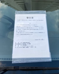実は、そうしたお電話のきっかけの多くは、私たちが現場で車両に貼り付ける「警告書」です。