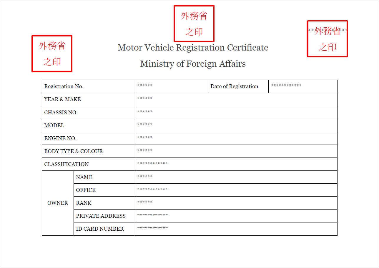 Motor Vehicle Registration CertificateMinistry of Foreign Affairs